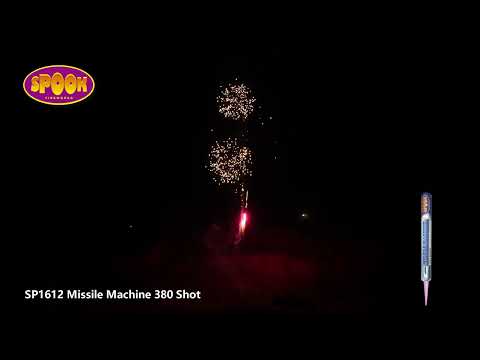 Get ready for an all-out aerial assault with the Missile Machine from Spook Fireworks! This high-energy barrage delivers 380 rapid-fire shots, launching an electrifying display of whistling missiles and crackling bursts. Perfect for adding non-stop excitement to your fireworks show—light it up and watch the sky come alive!