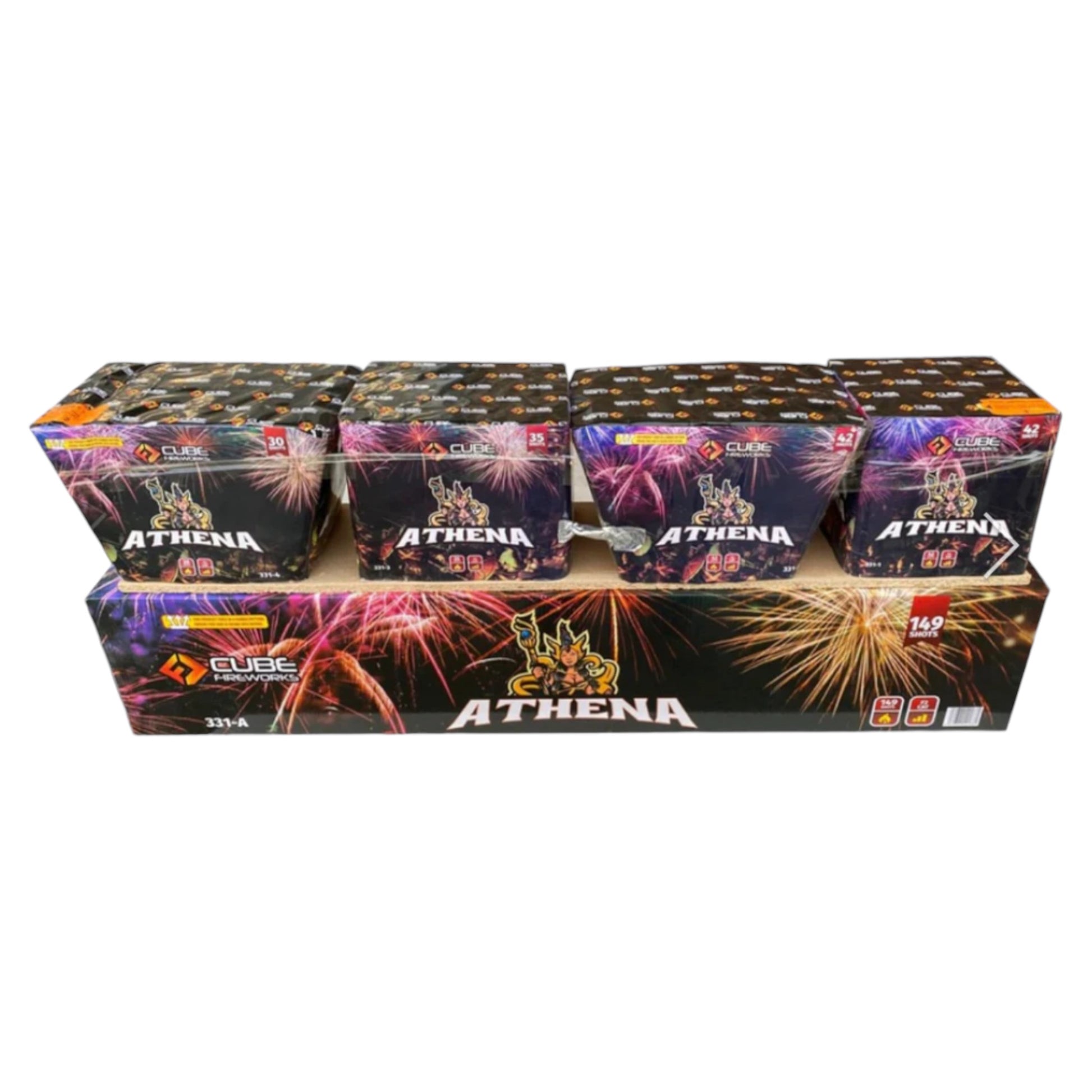 Witness the breathtaking beauty and ferocity of Athena, the goddess of wisdom and war, brought to life in this sensational compound firework display from Cube Fireworks. With the perfect harmony of power and mesmerizing effects, Athena is a truly unforgettable experience.