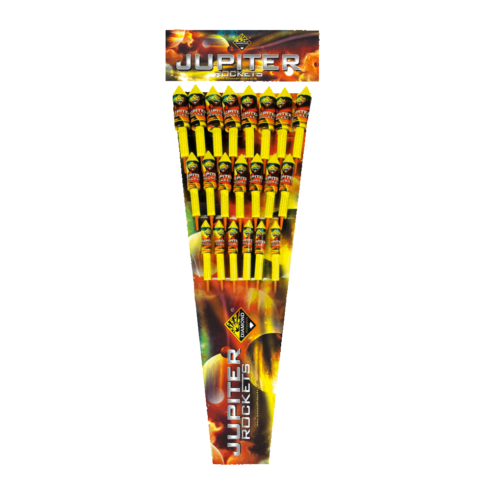 A collection of 21 rockets with 3 sizes and a medley of effects and colours. Each different size of rocket goes higher, has a larger effect burst and a louder bang!
