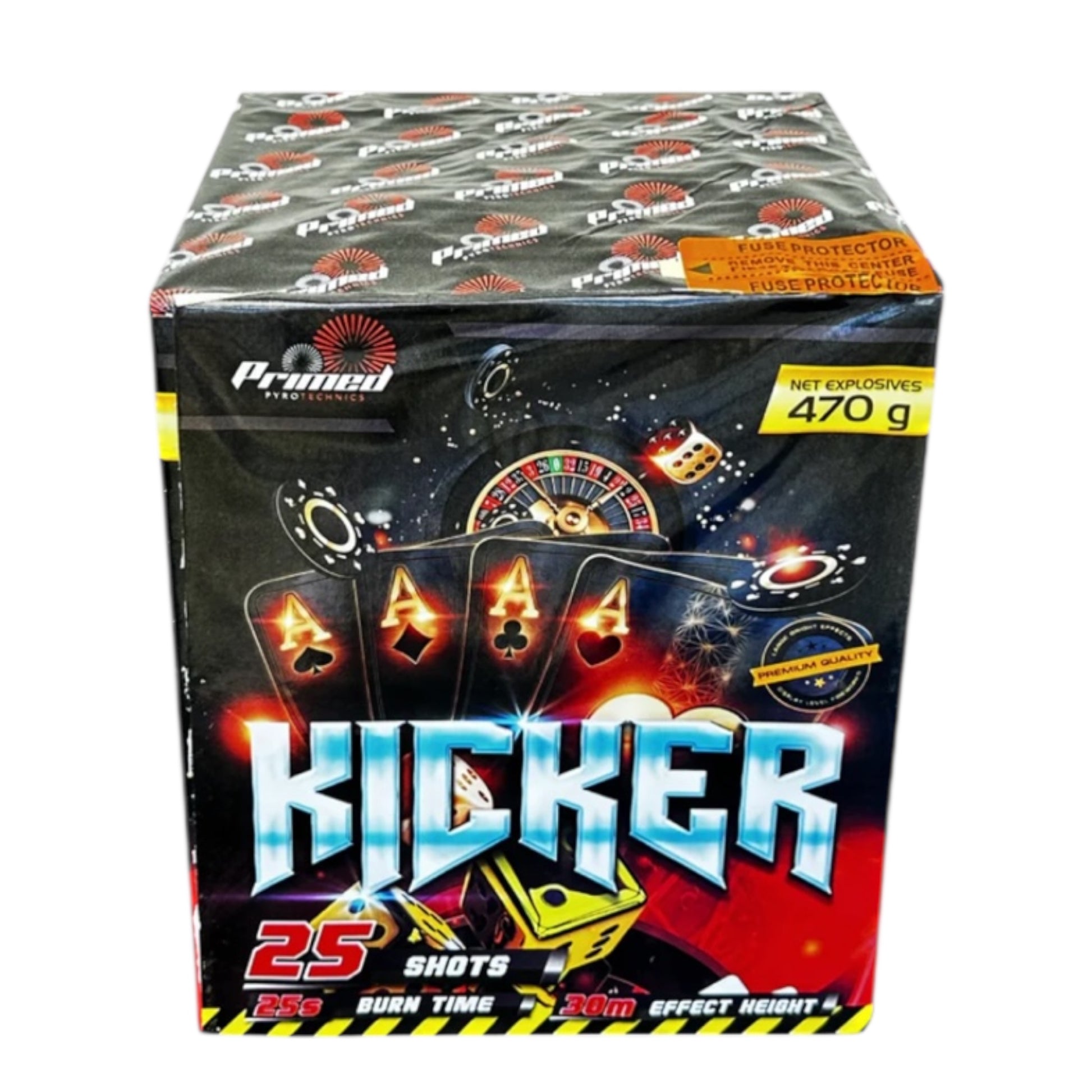 Get ready for a jaw-dropping experience with Kicker, a powerful and visually stunning firework by Primed Pyrotechnics. Kicker delivers a punch that will captivate your audience and leave them in awe of its dazzling display.